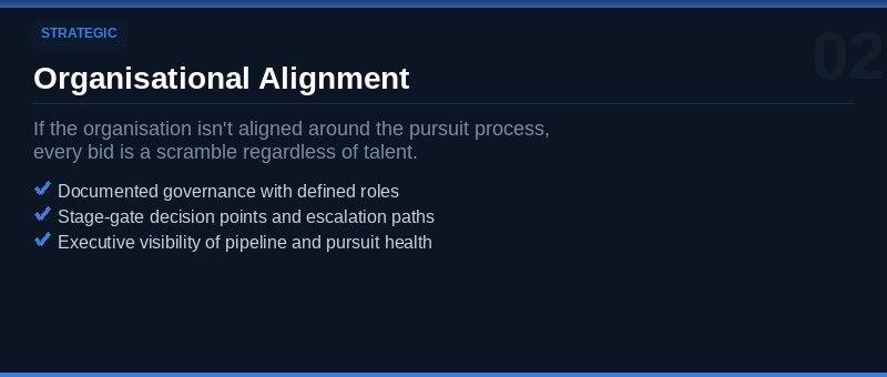 If the organisation isn't aligned around the pursuit process, every bid is a scramble.