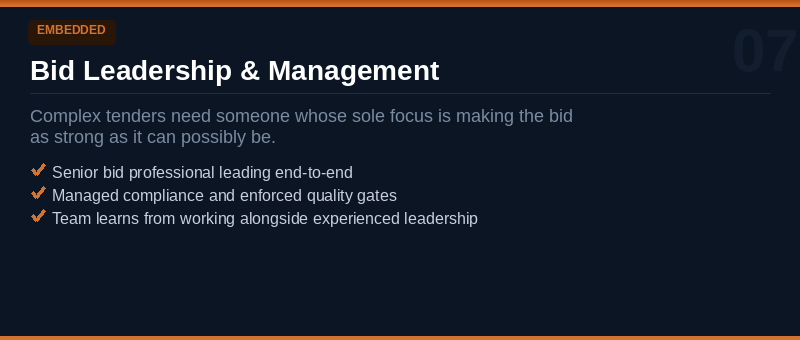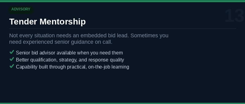 Not every situation needs an embedded bid lead. Sometimes you need senior guidance on call.