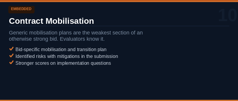 Generic mobilisation plans are the weakest section of an otherwise strong bid.
